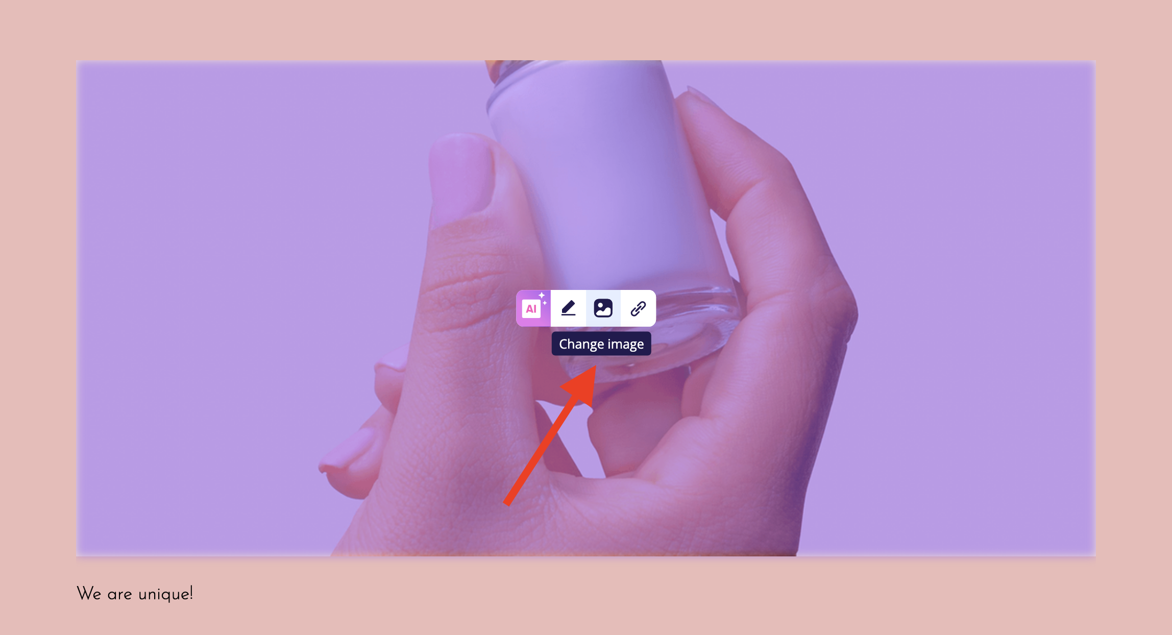 1. To substitute a new image in your widget, simply click the small image icon labeled "Change the image" on the existing image.