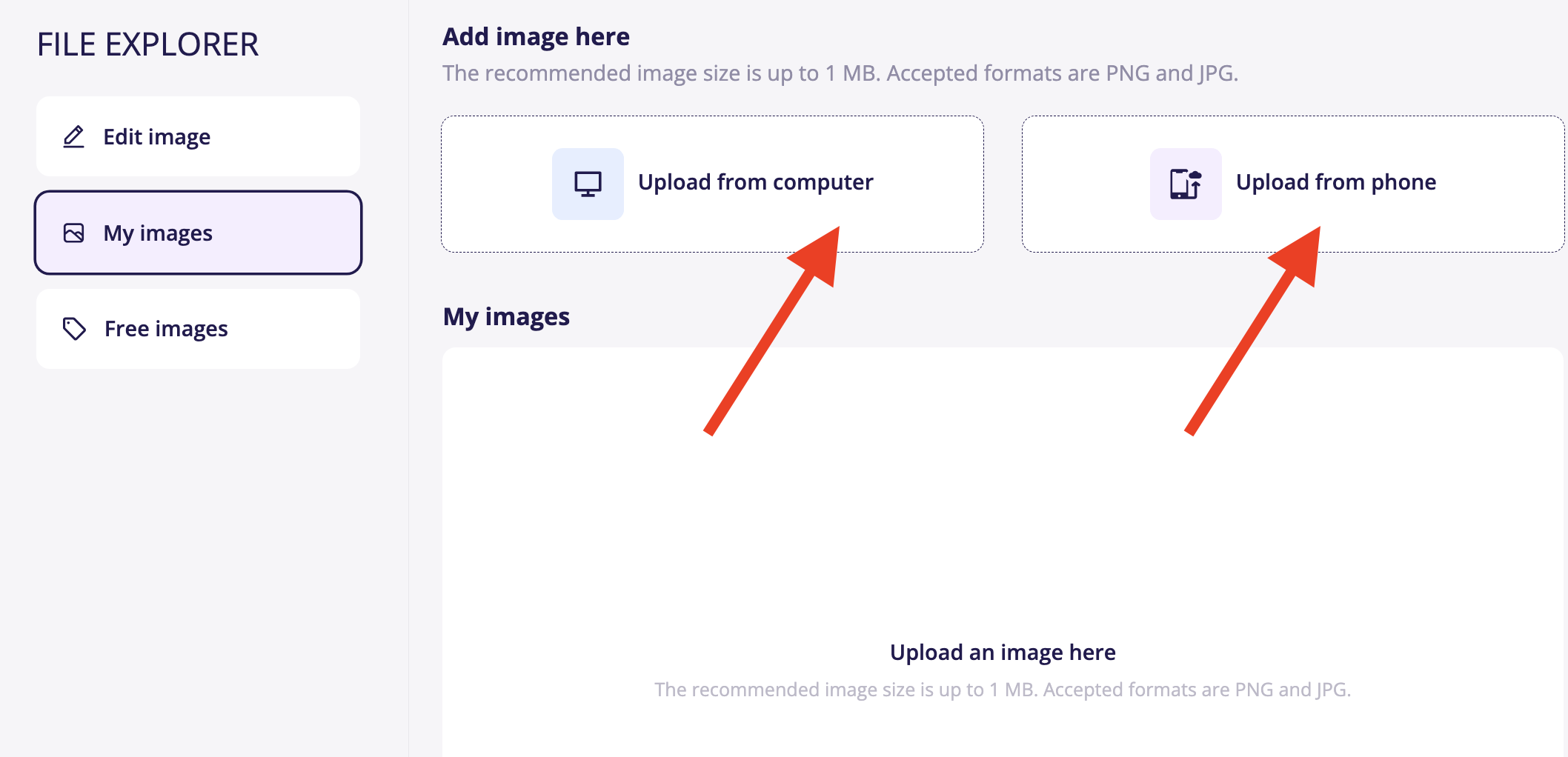 2. Next, you will encounter the option to upload images from your computer or phone; select the option that suits you best.