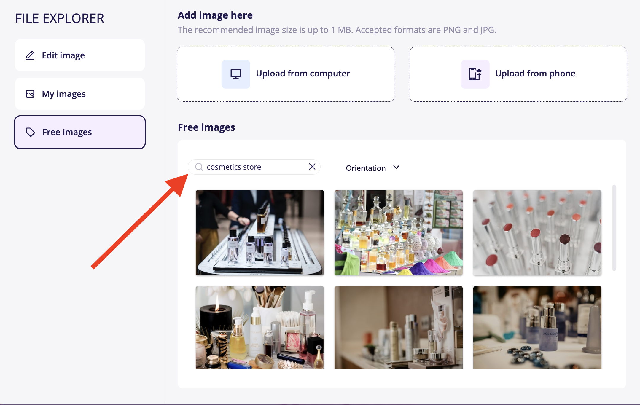 4. Alternatively, you can opt for an image from our stock images. A search option for the correct image category will be available.