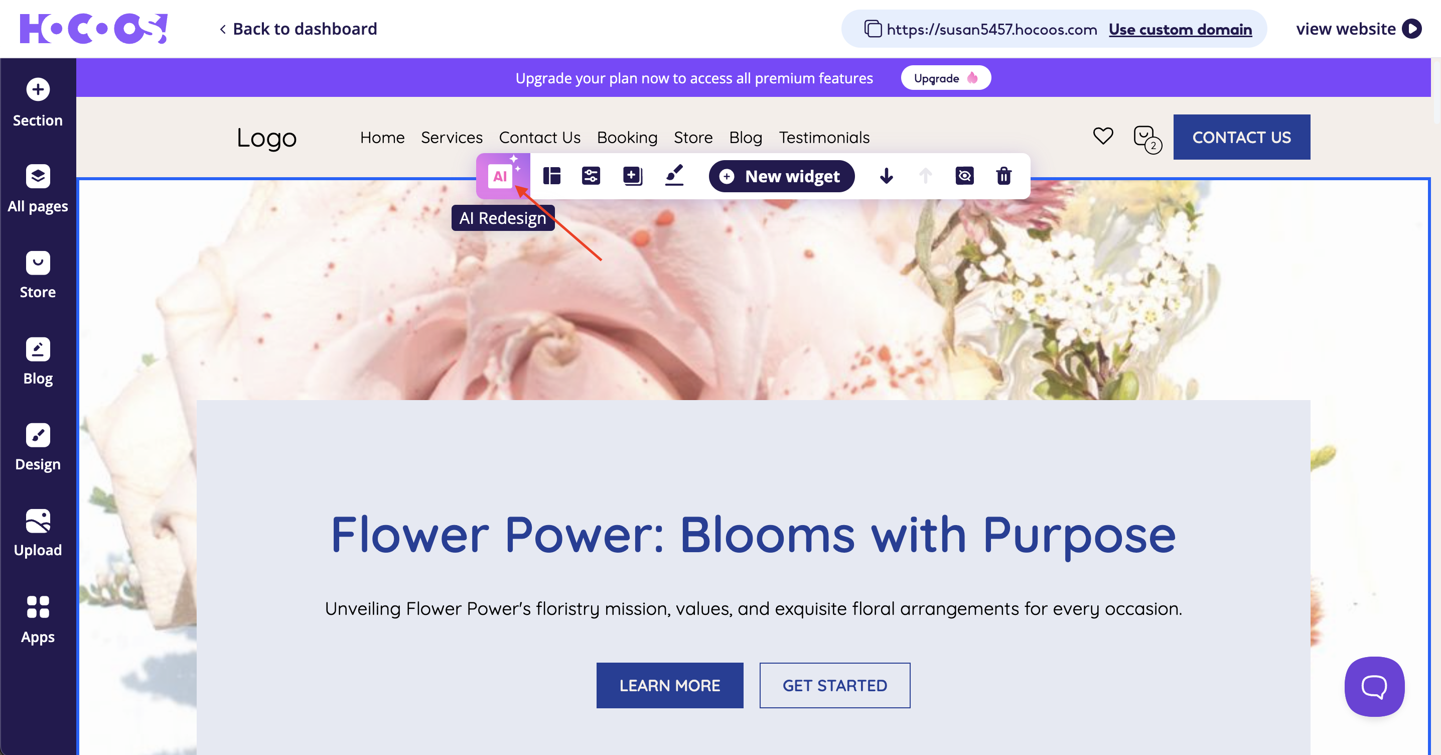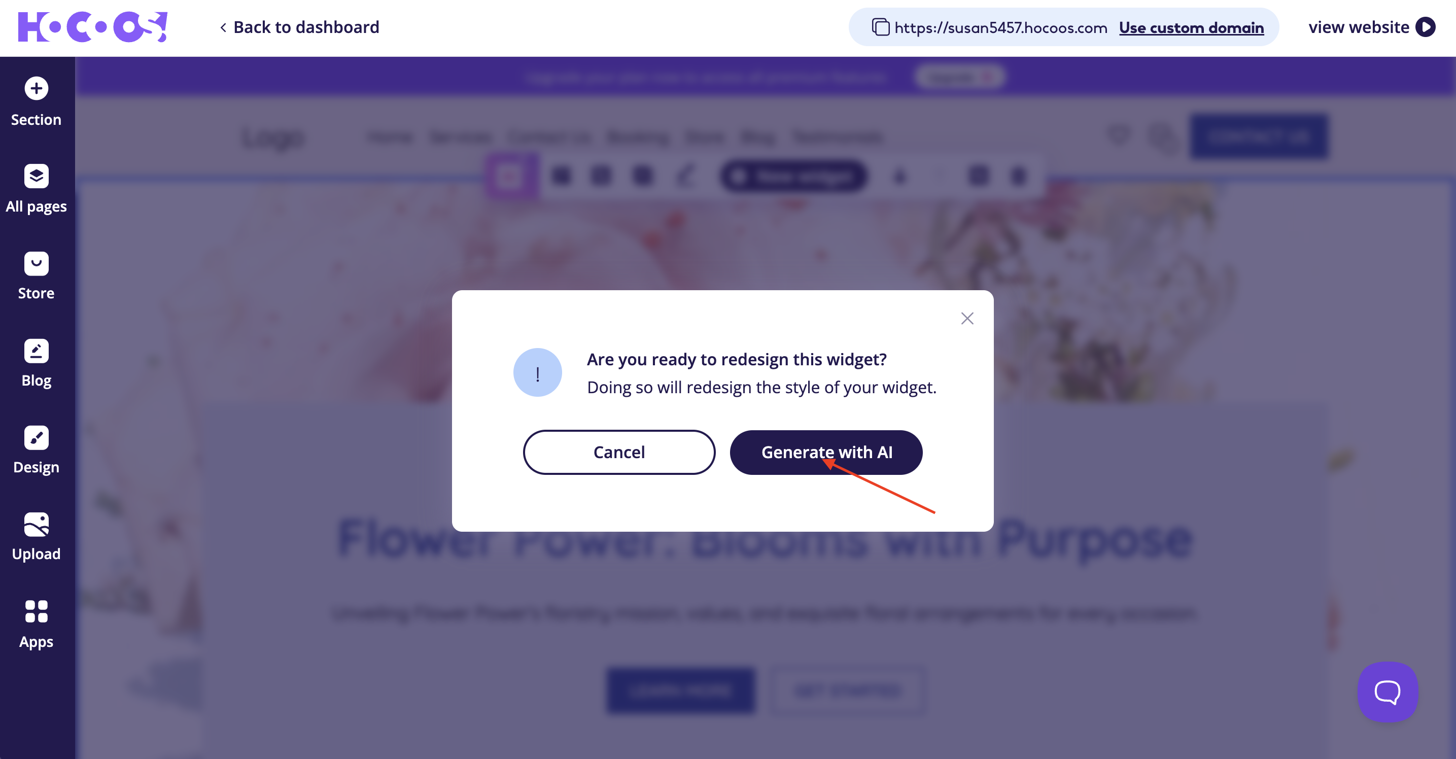 It allows you to use the AI to change the design for your widget. This button usage requires confirmation.