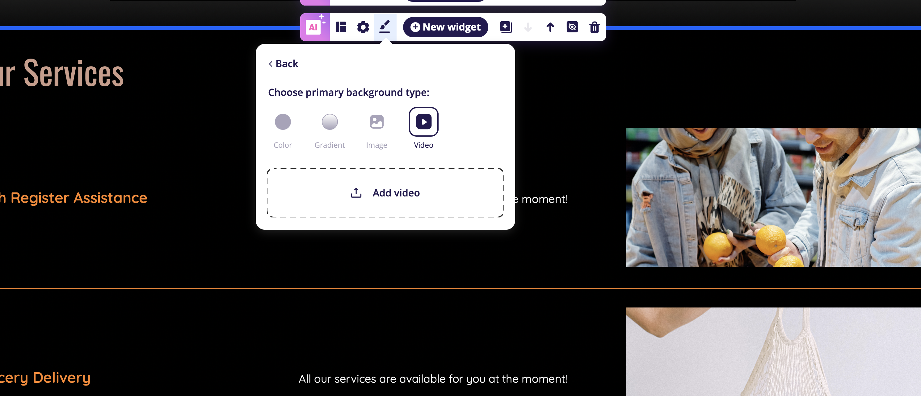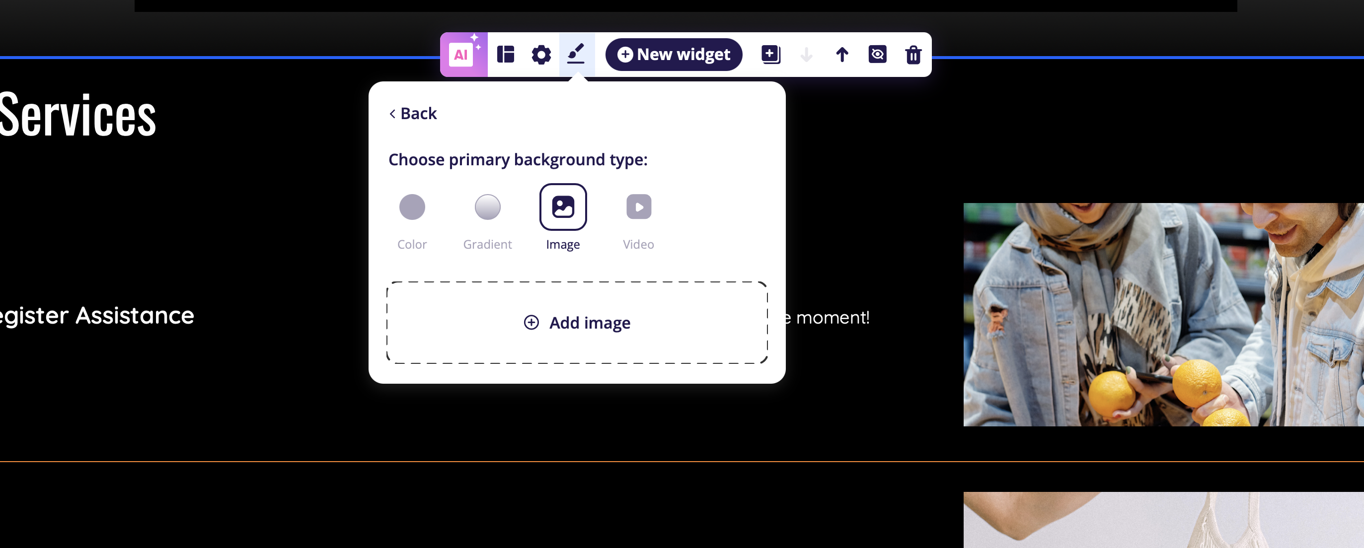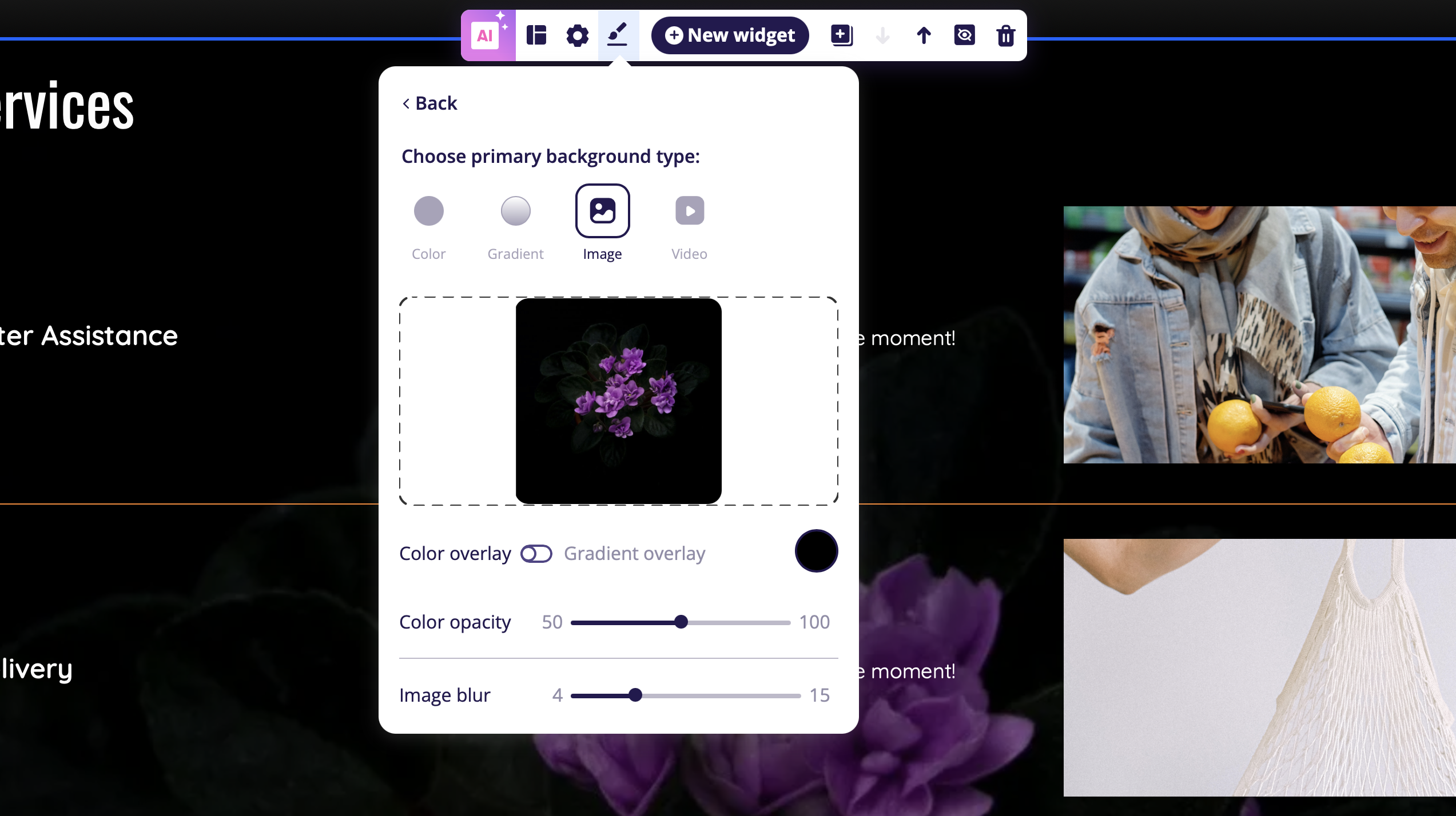 - A color overlay is automatically applied to improve content readability. To remove it, set the overlay opacity to 0.
