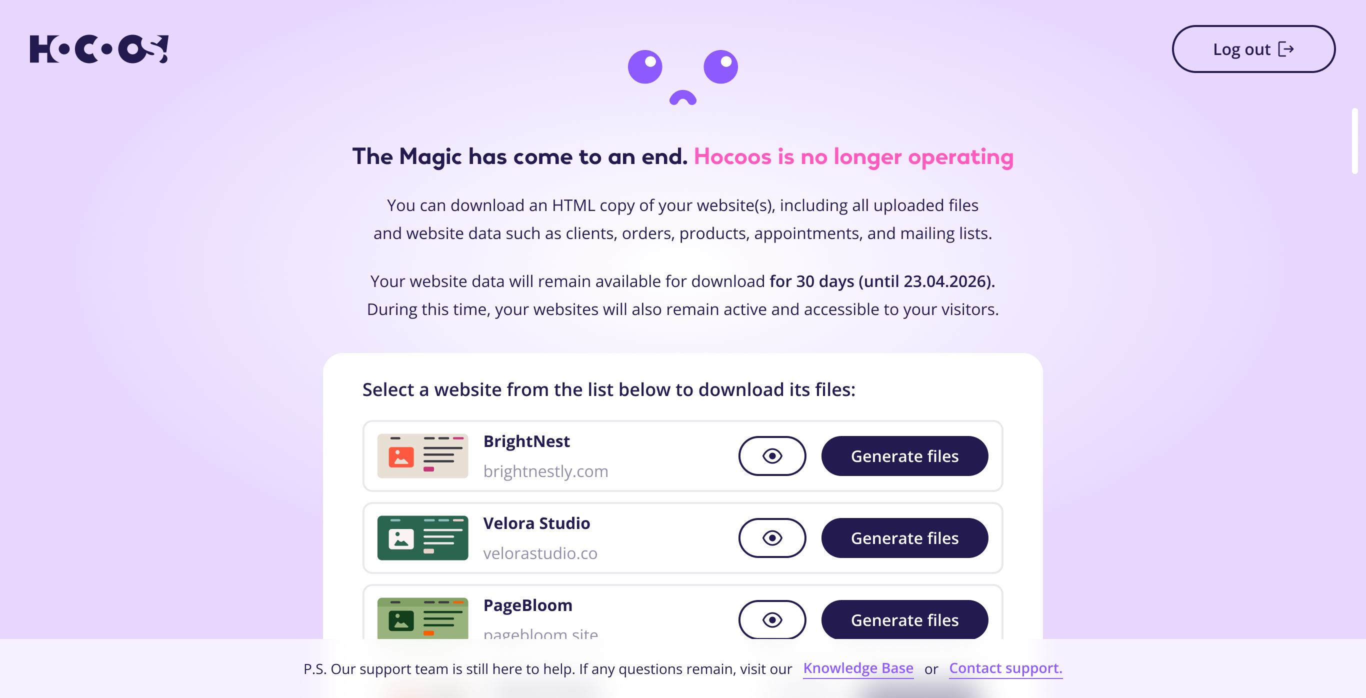 We want to share an important update: Hocoos AI Website Builder is being discontinued.